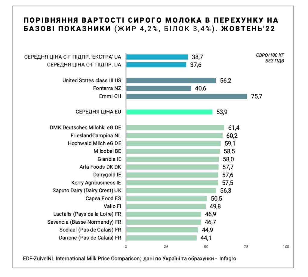 По Україні додано не тільки вартість молока «екстра», як в моніторингу, а й середній показник вартості для всіх с/г підприємств, так як ми конкуруємо з іншими експортерами по продуктах, виготовлених не тільки з молока «екстра» ґатунку.