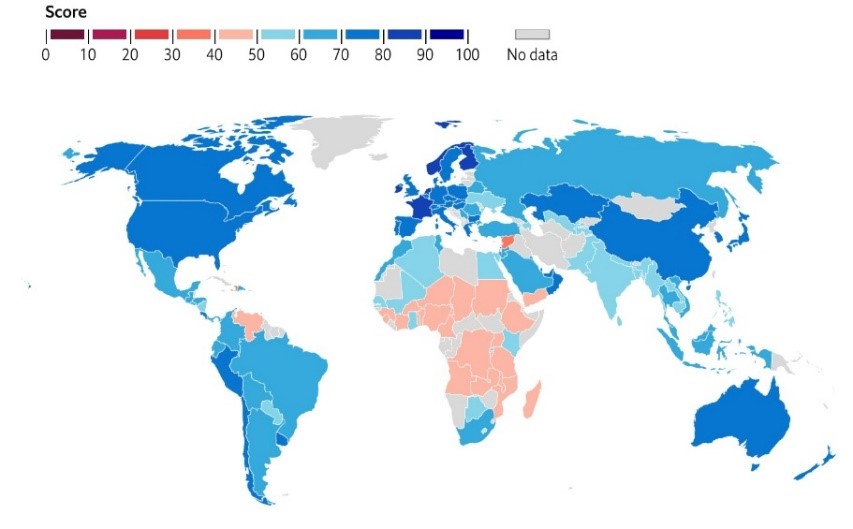 Рис. 1. Рівень продовольчої безпеки країн світу за індексом продовольчої безпеки GFSI