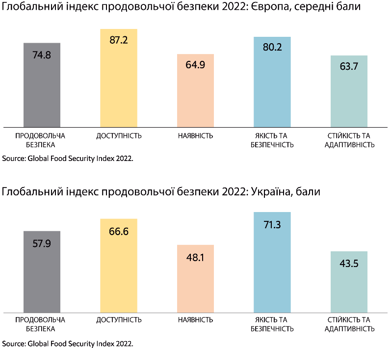Рис. 2. Глобальний індекс продовольчої безпеки: Європа і Україна