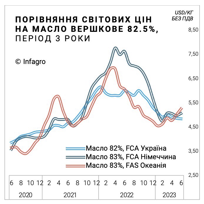 Динаміка цін на масло вершкове, Україна, Німеччина, Океанія – infagro.com.ua