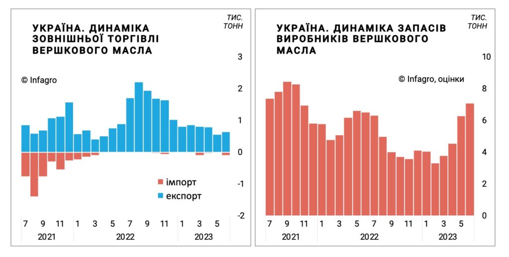 Динаміка експорту та запасів виробників масла вершкового в Україні – розрахунки та оцінки infagro.com.ua