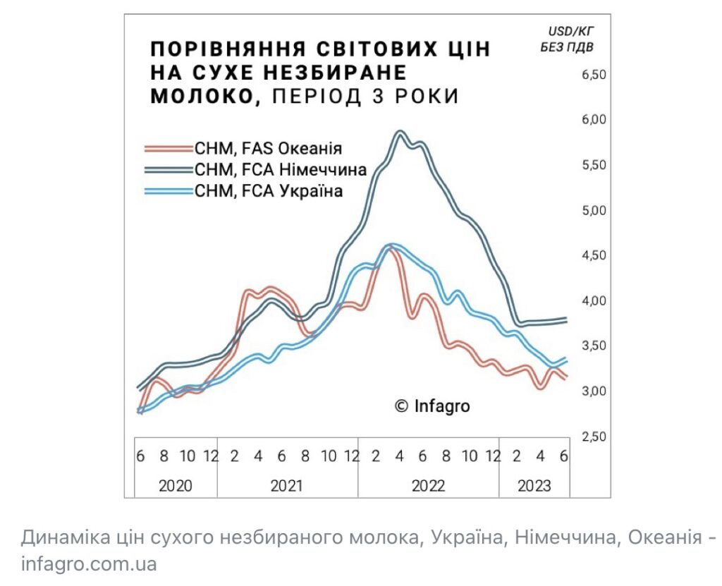 Останні роки вартість СНМ у світі знаходилася під впливом COVID та тиску епідемії на економічні тенденції країн, які розвиваються (які, одночасно, є основними імпортерами сухого знежиреного молока). Проте, ріст цін на сировину та енергетична криза, які формували загальну світову інфляцію, у 2022 році також розігнали вартість сухого незбираного молока.