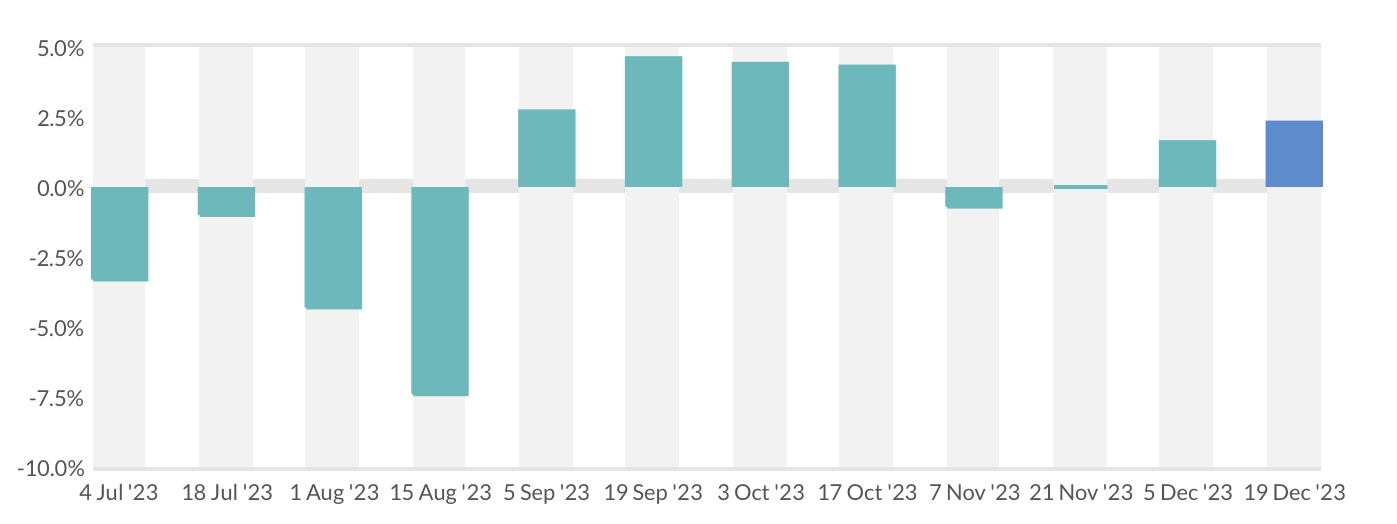 Загалом було продано 27,4 тис. тонн молочної продукції. У торгах узяли участь 156 учасників. Середньозважена ціна на молочну продукцію склала 3388 USD/т. Наступні торги GDT відбудуться 2 січня.