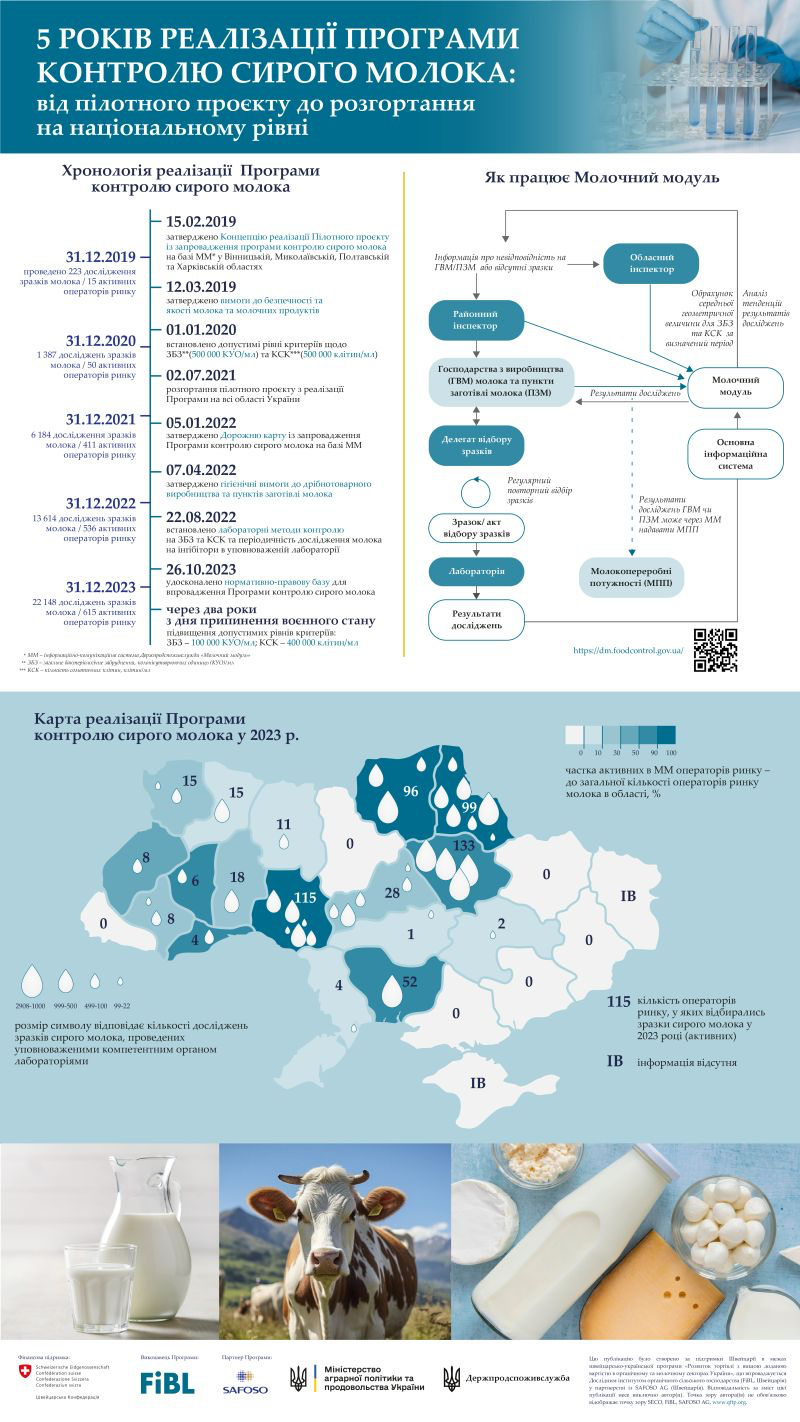 Пропонуємо ознайомитися з ключовими досягненнями в реалізації Програми контролю сирого молока за 5 років на інфографіці.