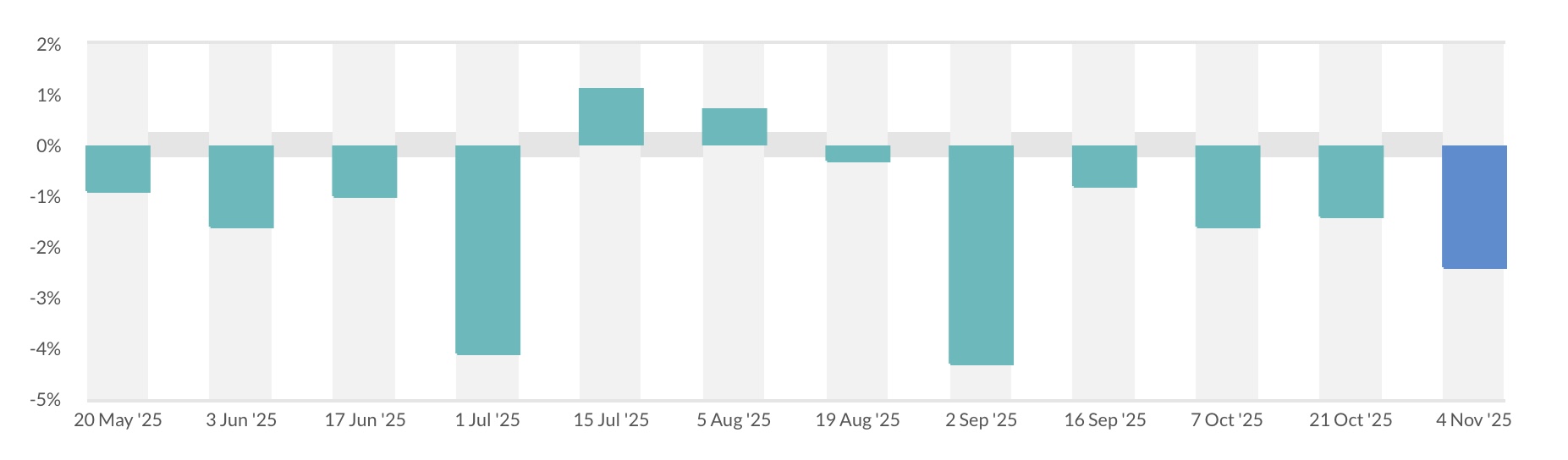 Під час торгів Global Dairy Trade, що відбулися 4 листопада, загальний індекс цін на молочну продукцію зменшився на 2,4%.