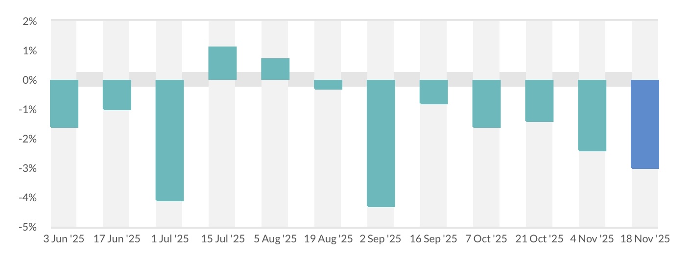 На торгах Global Dairy Trade, що відбулися 18 листопада, індекс цін на молочні продукти знизився ще на 3%.
