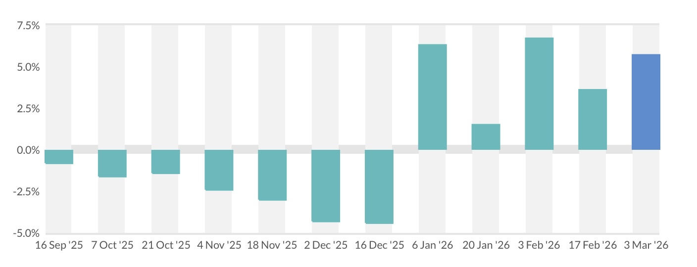 Індекс цін на торгах Global Dairy Trade стабільно зростає: на торгах 3 березня він додав 5,7%.